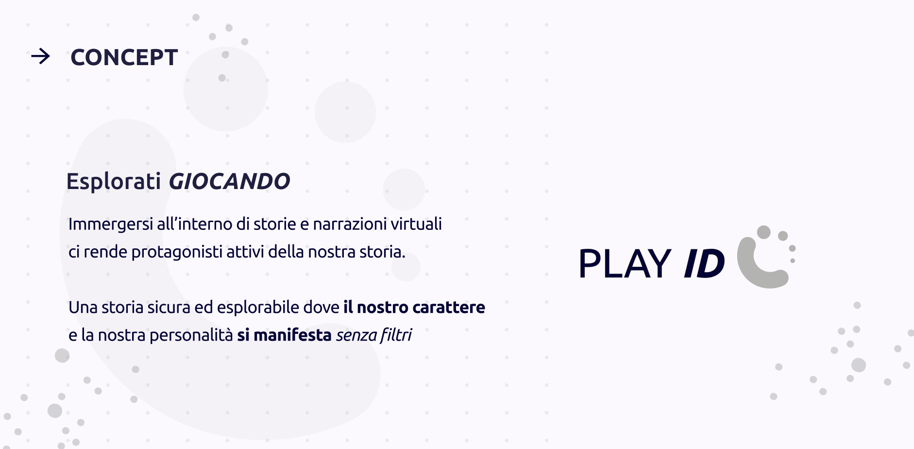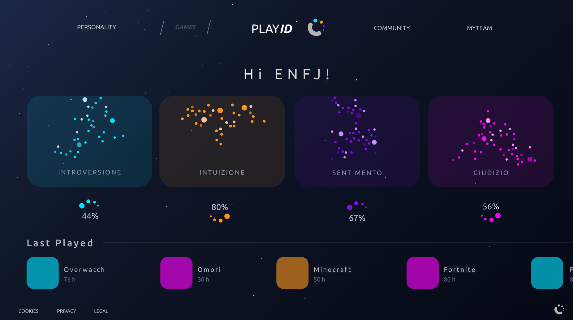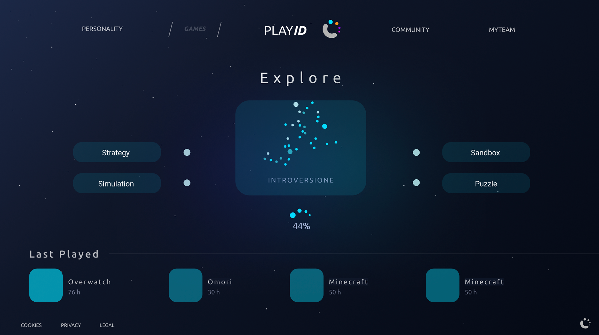 PLAYID is a platform designed as a support tool for traditional therapy, created to offer an experience of character self-exploration through gameplay. PLAYID allows users to generate an interactive map that evolves based on the choices made across the various games explored. By providing patients with a safe environment in which to explore themselves, these personal maps record feedback and areas for growth, transforming play into a pathway that traces the evolution of the player’s personality.